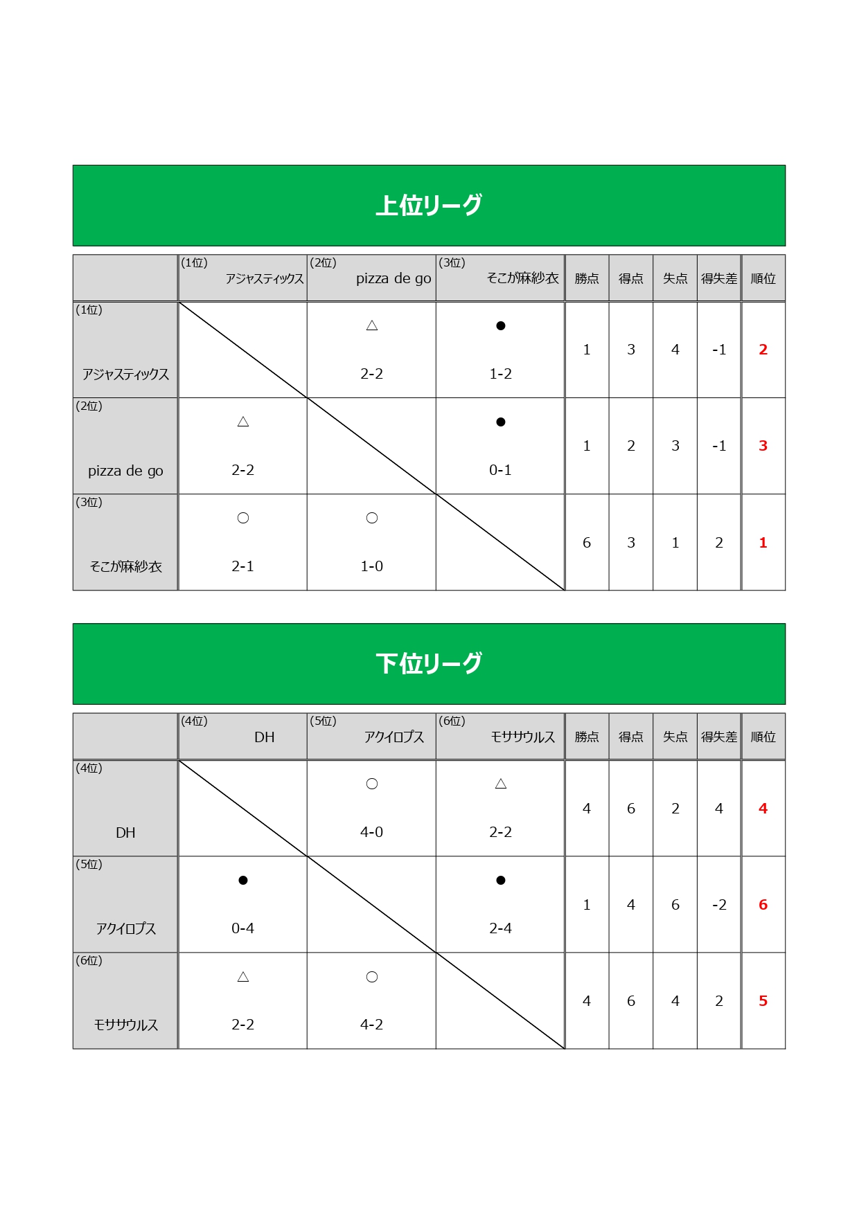 予選リーグを行った後、上位3チーム下位3チームに分かれて順位を決めます!!