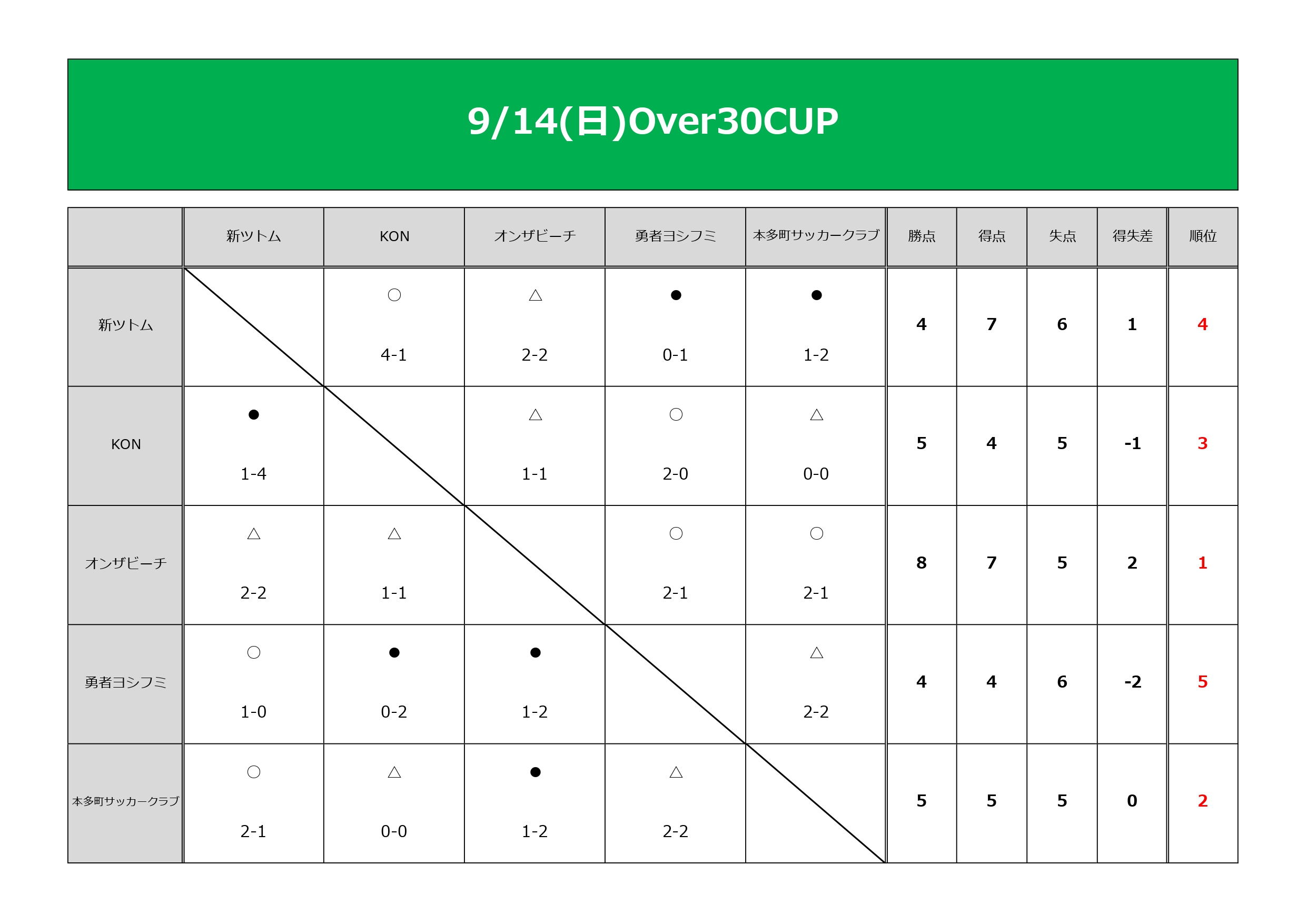 9/14(日)Over30CUP