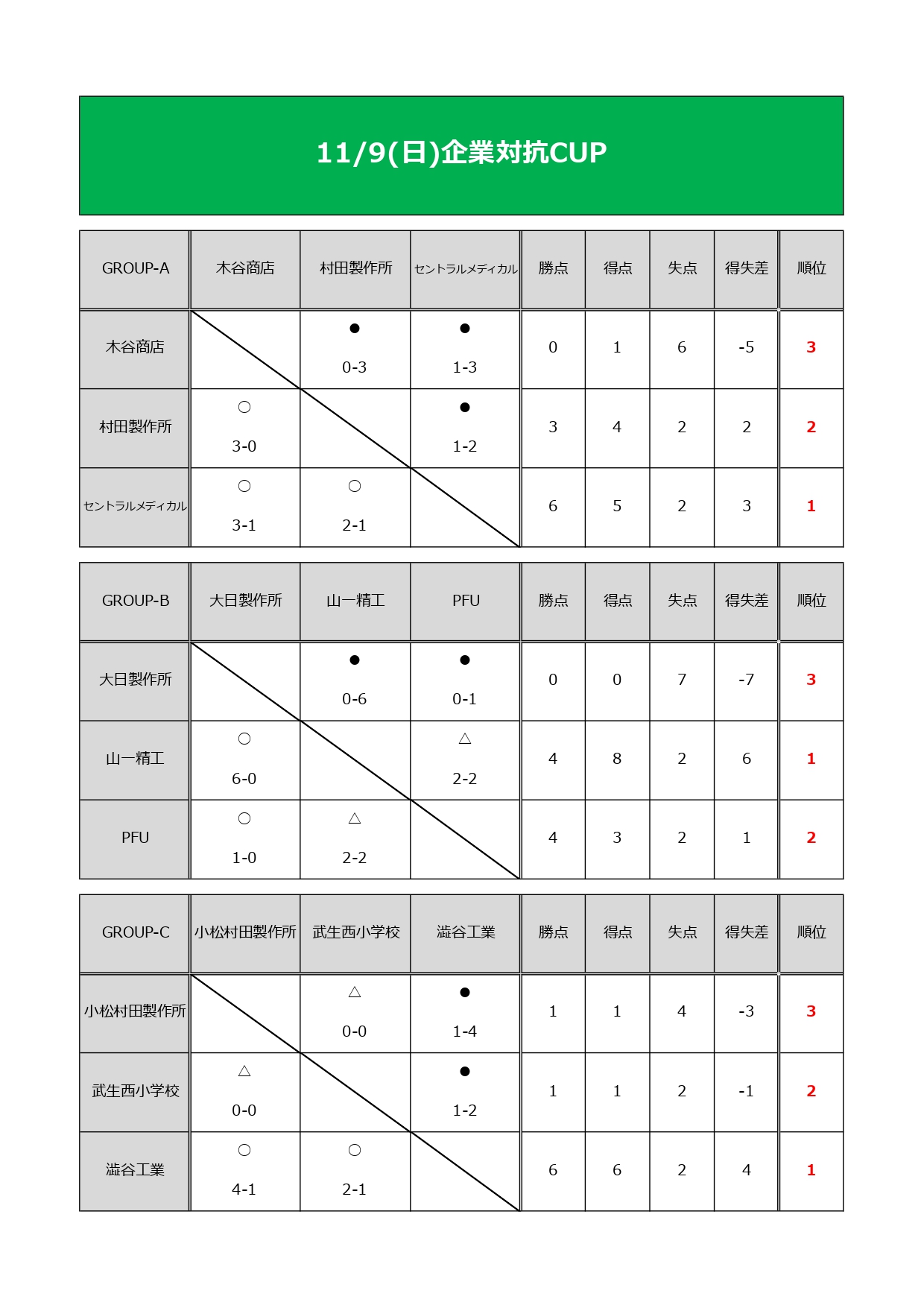 11/9(日)企業対抗カップ