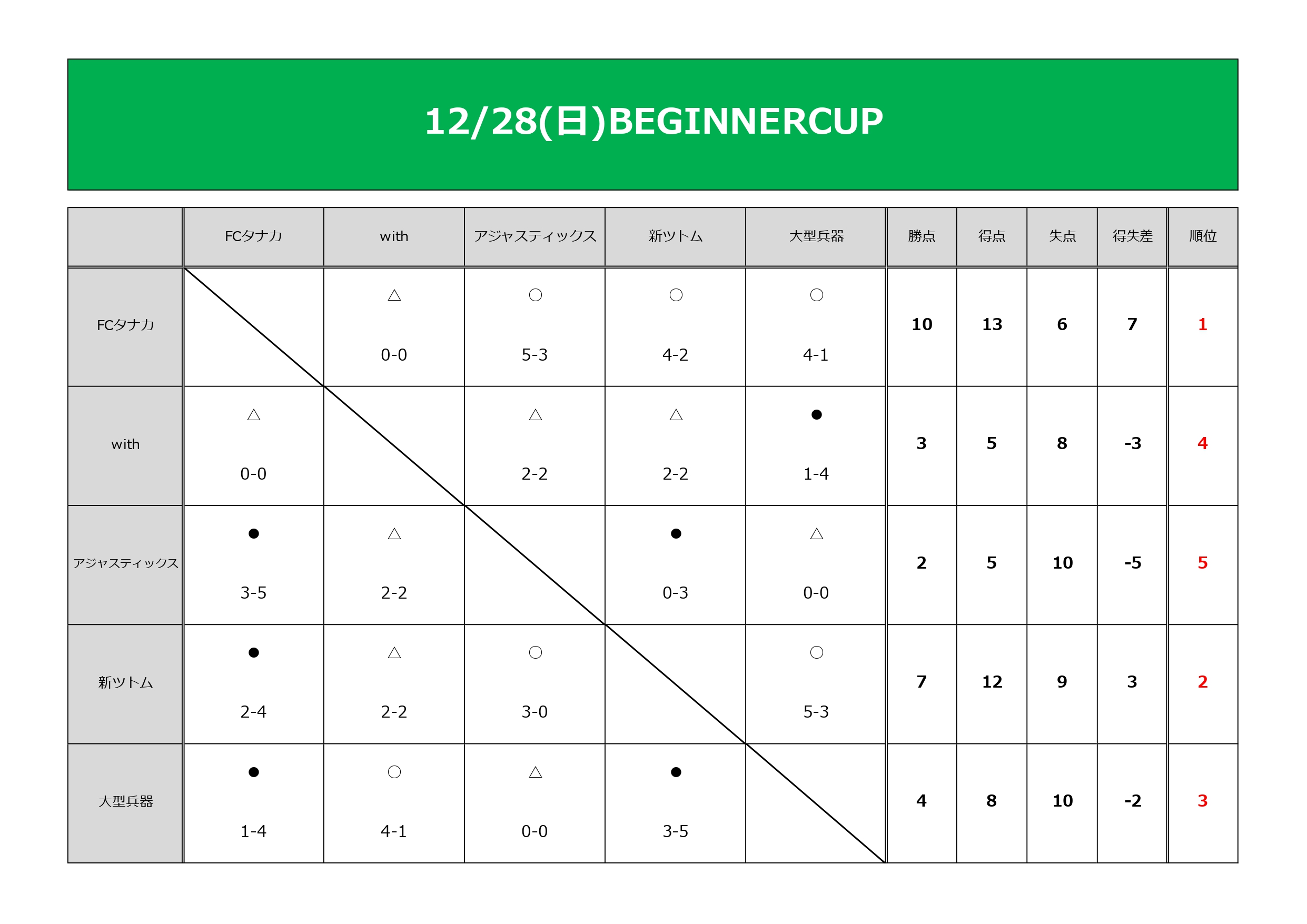 優勝:FCタナカ