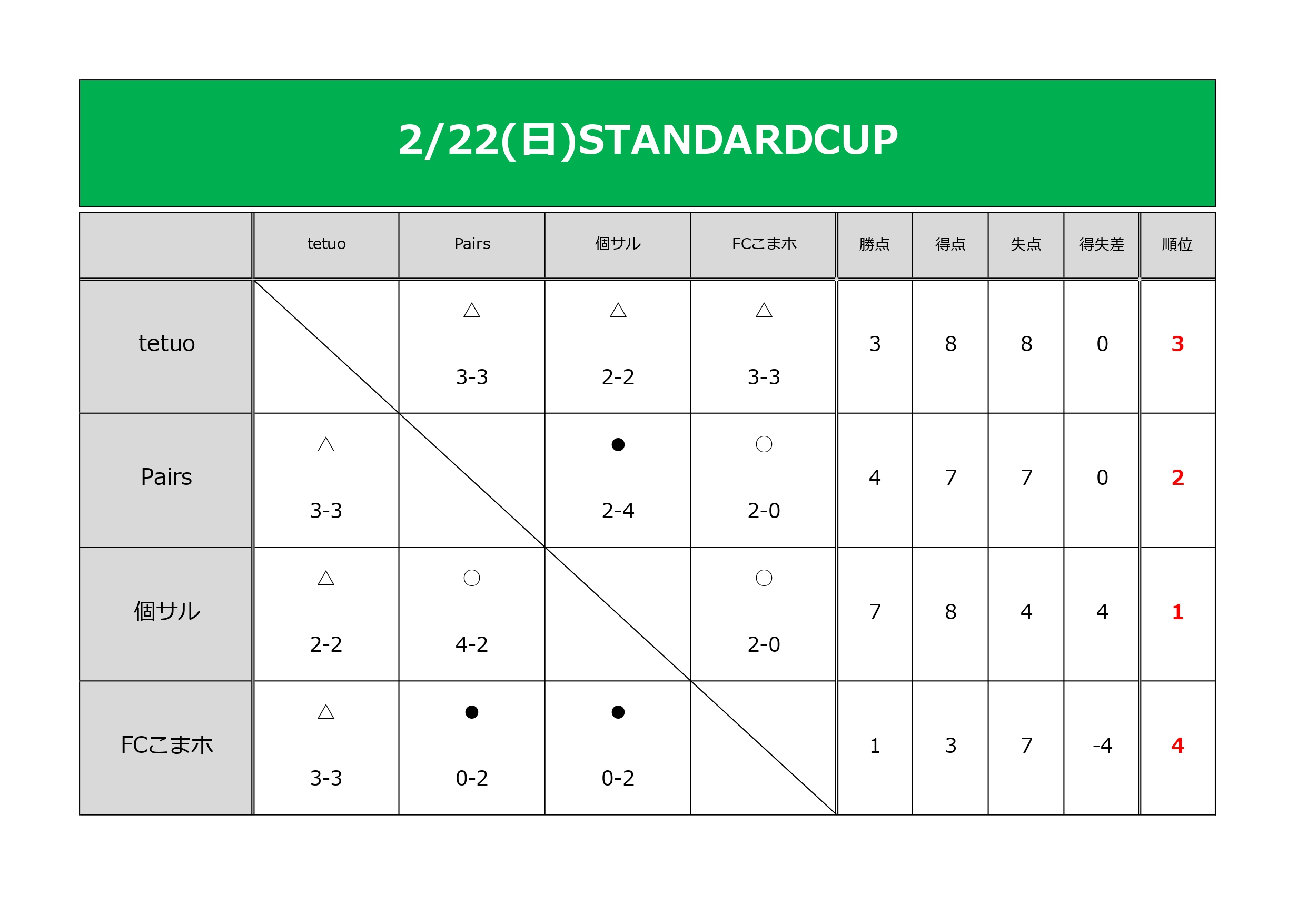 2/22(日)STANDARDCUP
